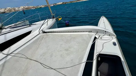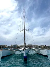 Meticulously maintained with 6 winches, renewed 2025 rigging, refurbished trampolines, and 2023 sails, spare lazybag and many extras, it's offered in "sail-away" condition, fully equipped for cruising. VAT is paid. This vessel promises an unparalleled sailing experience for exploring new horizons.
